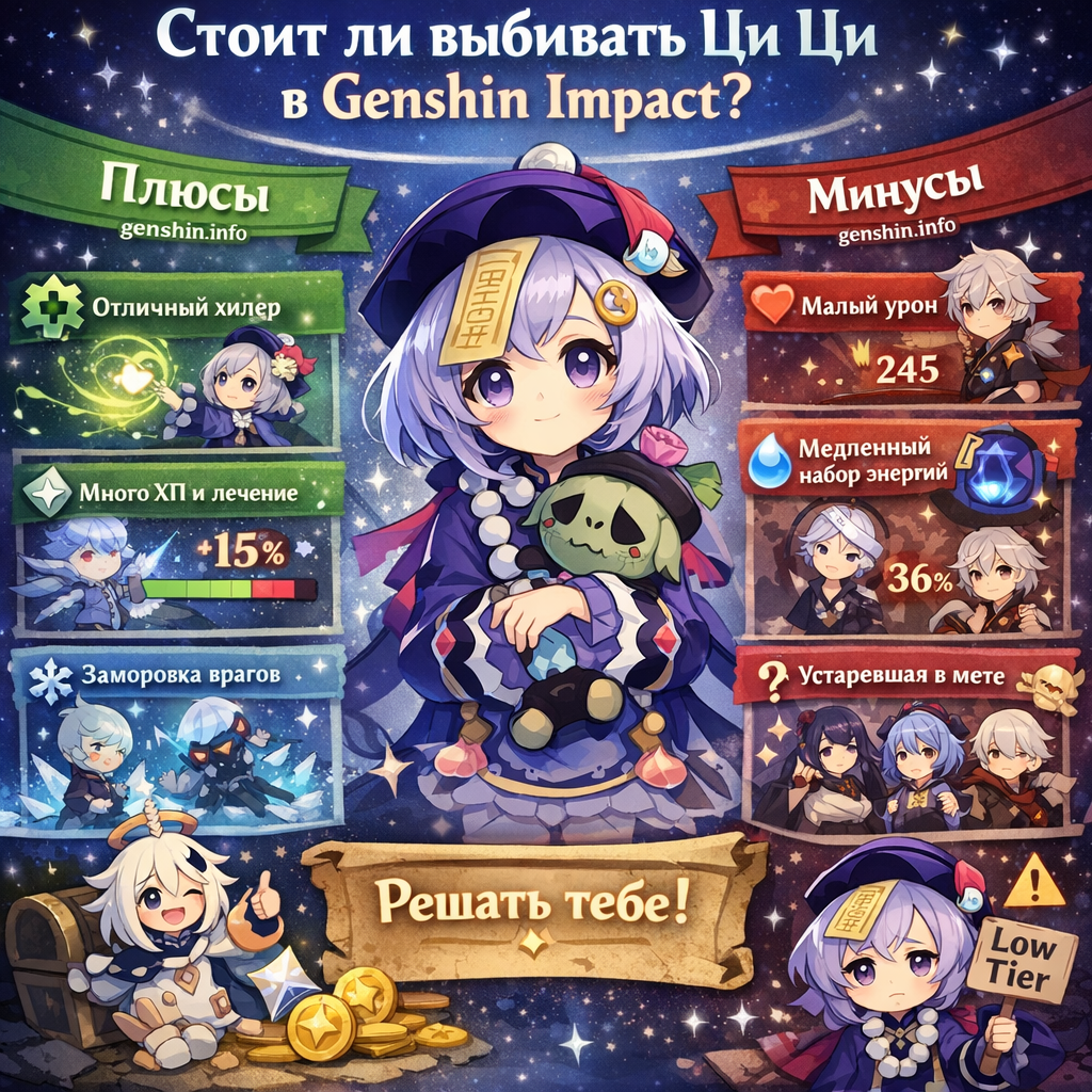Ци Ци (Qiqi) — это 5★ пятизвёздочный персонаж и один из самых неоднозначных персонажей в Genshin Impact. Как пятизвёздочный целитель, она вызывает полярные мнения: одни игроки считают её бесполезной, другие — незаменимой. Давайте разберёмся объективно, стоит ли тратить примогемы на этого персонажа.