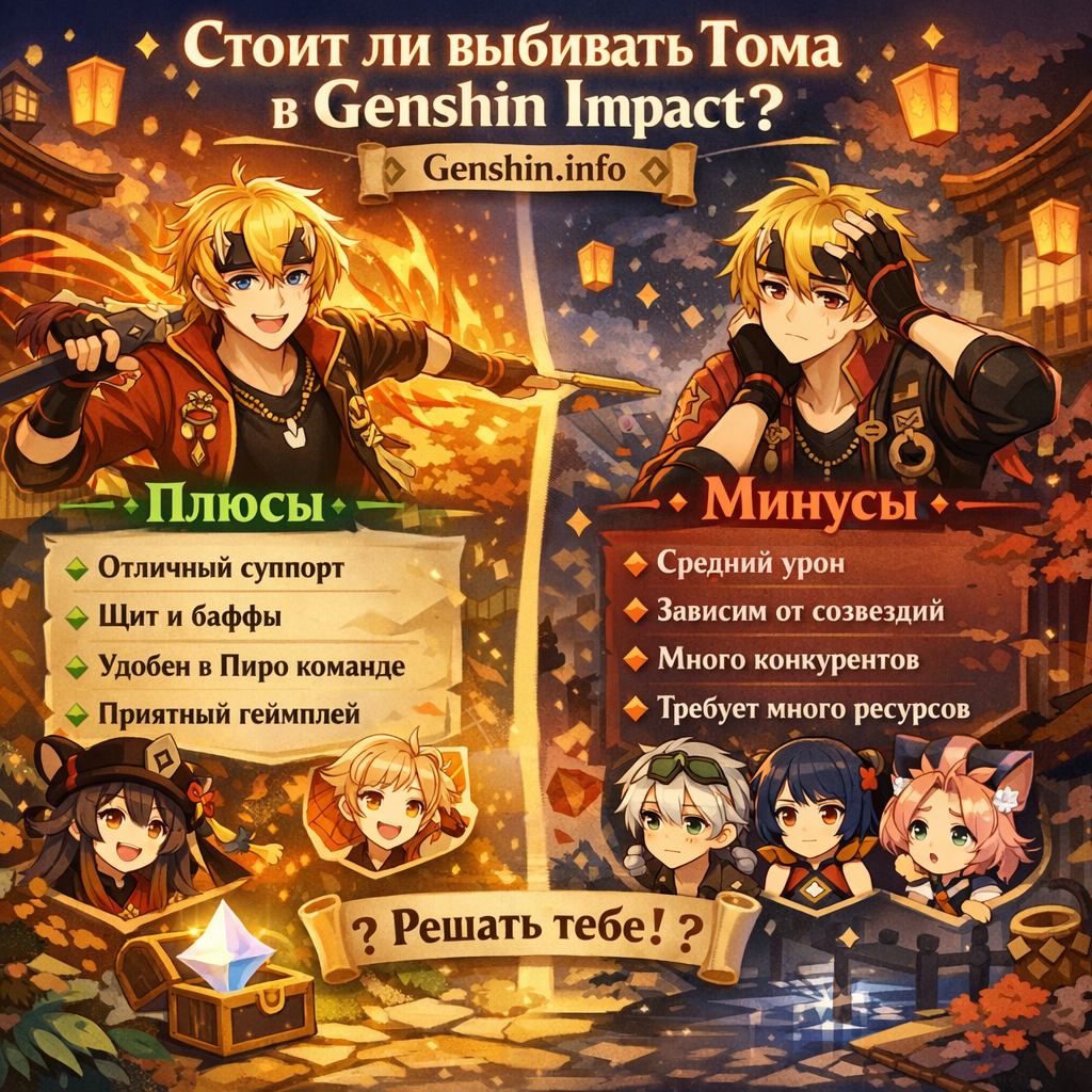 - 1. У вас уже есть Чжун Ли: Если Чжун Ли закрывает все ваши потребности в защите, Тома будет второстепенным выбором;