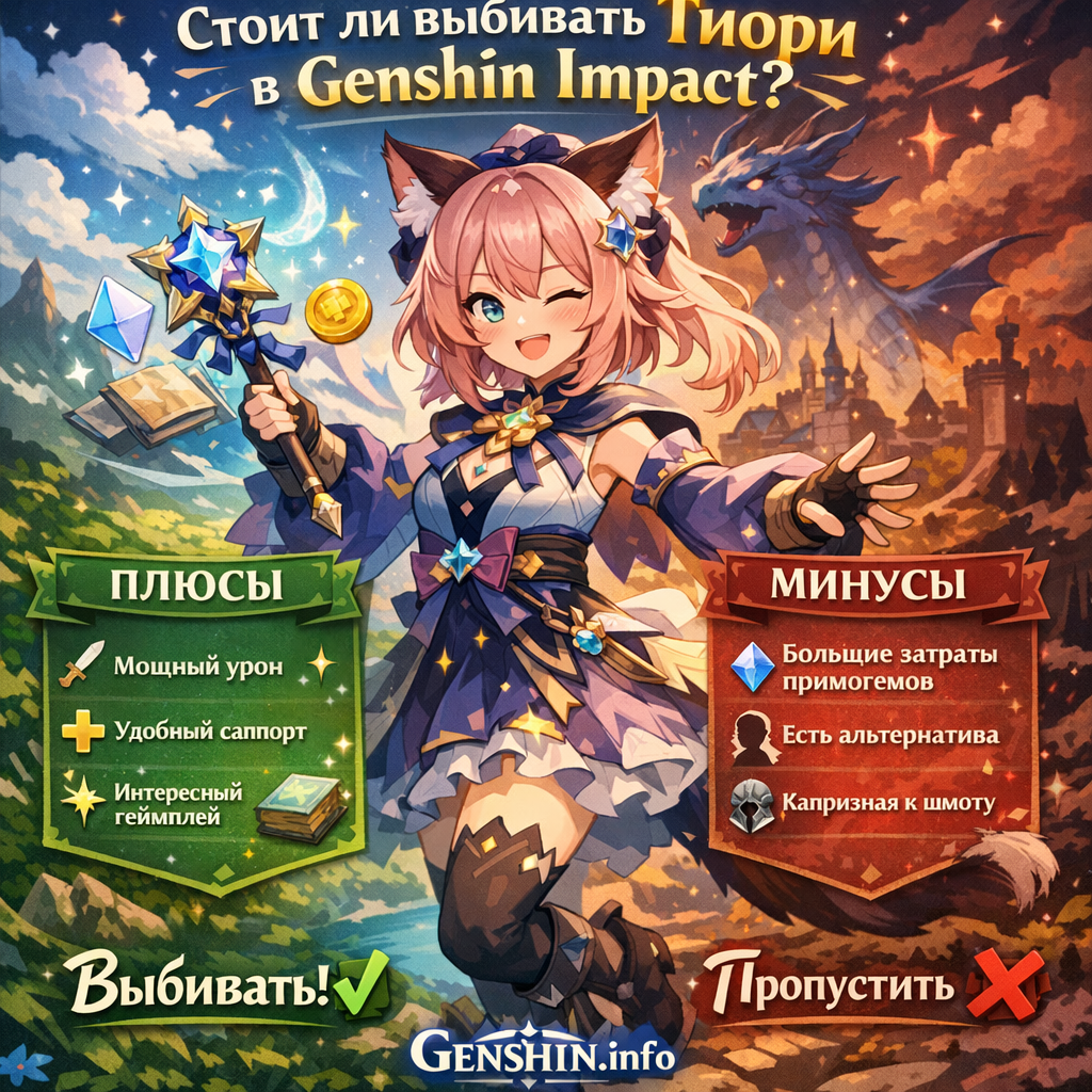 Если у вас уже есть прокачанный Альбедо и вы не гонитесь за рекордами в Бездне, Тиори не является обязательной. Но если вы хотите довести свою Гео-пачку до совершенства и вам нужен стабильный урон, который не ломается боссами — Тиори станет одним из лучших приобретений для вашего аккаунта.