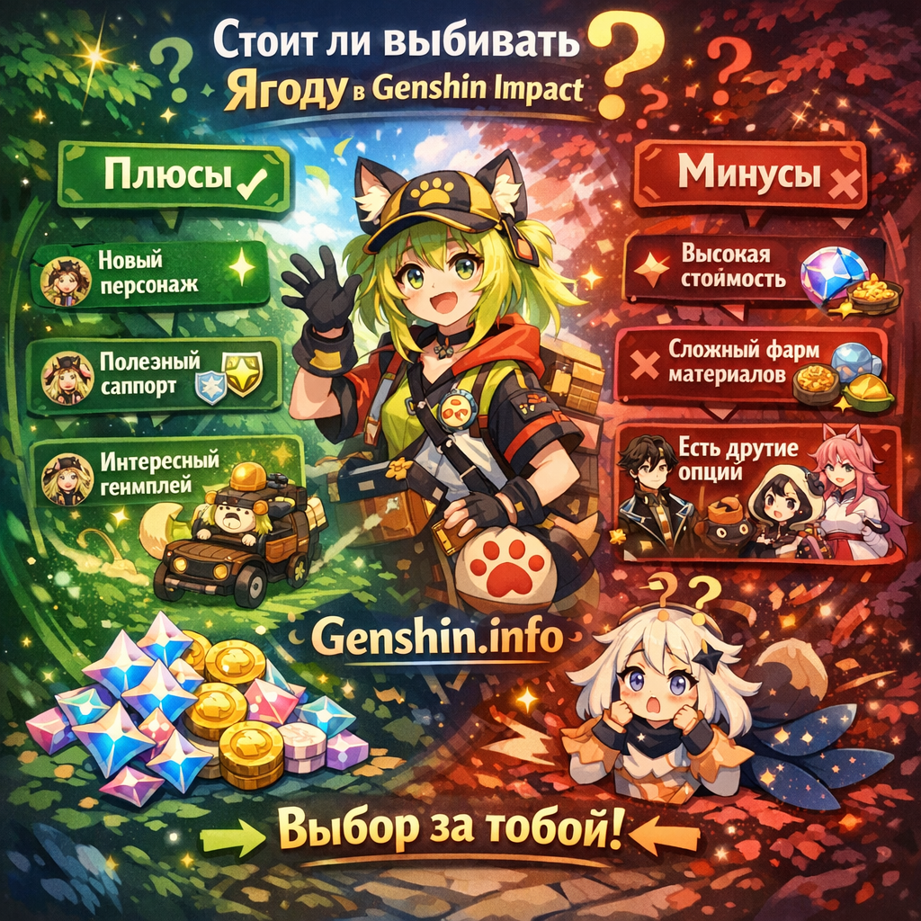 Ягода (Berries) — это 4★ звездочная героиня и один из самых обсуждаемых персонажей в Genshin Impact, особенно среди игроков, ориентированных на энд-контент. Ее уникальность и мощь неоспоримы, но вот вопрос: стоит ли тратить значительные ресурсы (Моры, Опыт, Артефакты, Восприятия) именно на нее? Ответ, как часто бывает в Genshin, зависит от вашего стиля игры и целей. Давайте разберем плюсы и минусы.