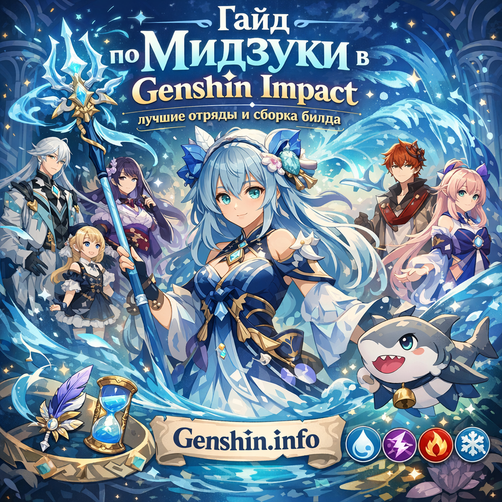 Особенно рекомендуется тянуть Мидзуки игрокам, у которых есть: Райдэн, Аято, Нёвиллет, Ху Тао, Нахида, Аяка или Сайно — с этими персонажами синергия максимальная, и вы сразу почувствуете разницу в эффективности отрядов.